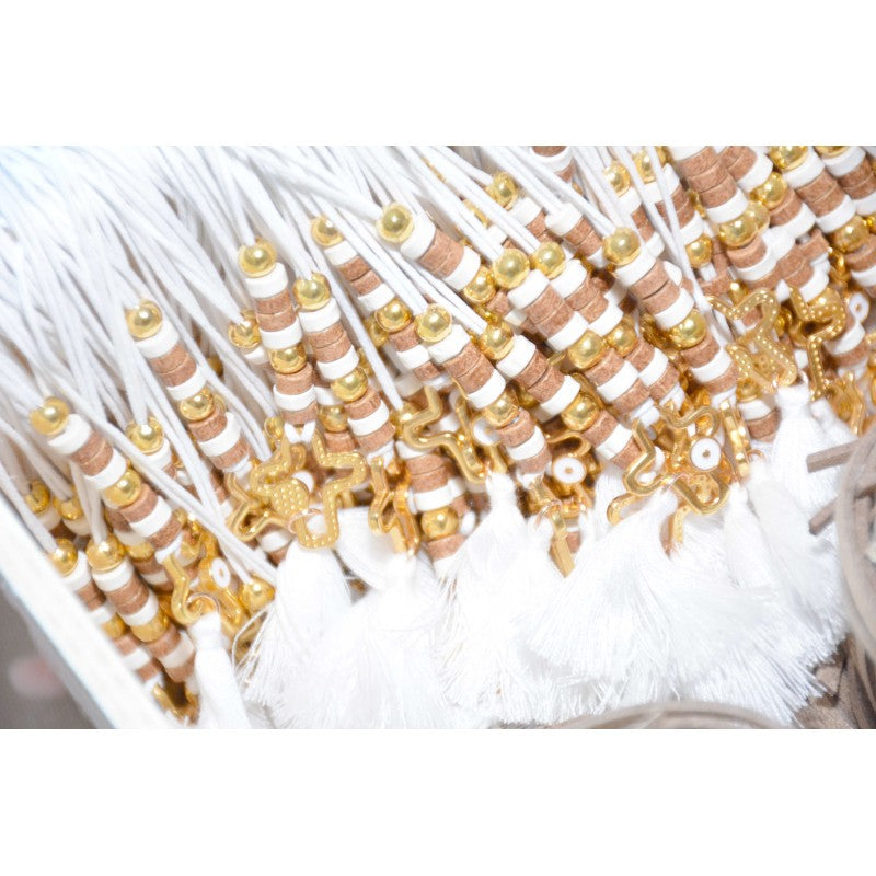 Μαρτυρικό μπεγλέρι σε αποχρώσεις λευκό-μπεζ με ιδιαίτερο σταυρό και φουντίτσα