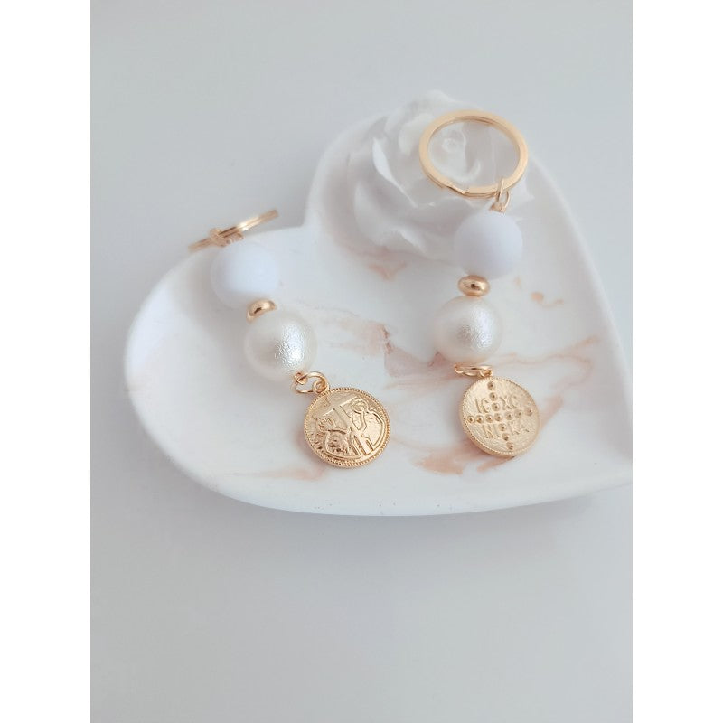 Μαρτυρικό μπρελόκ ΑγιοΚωνσταντινάτο σε χρυσό - εκρού και λευκό