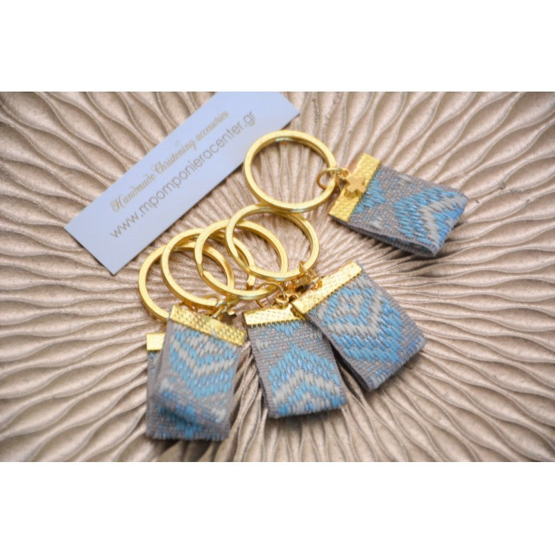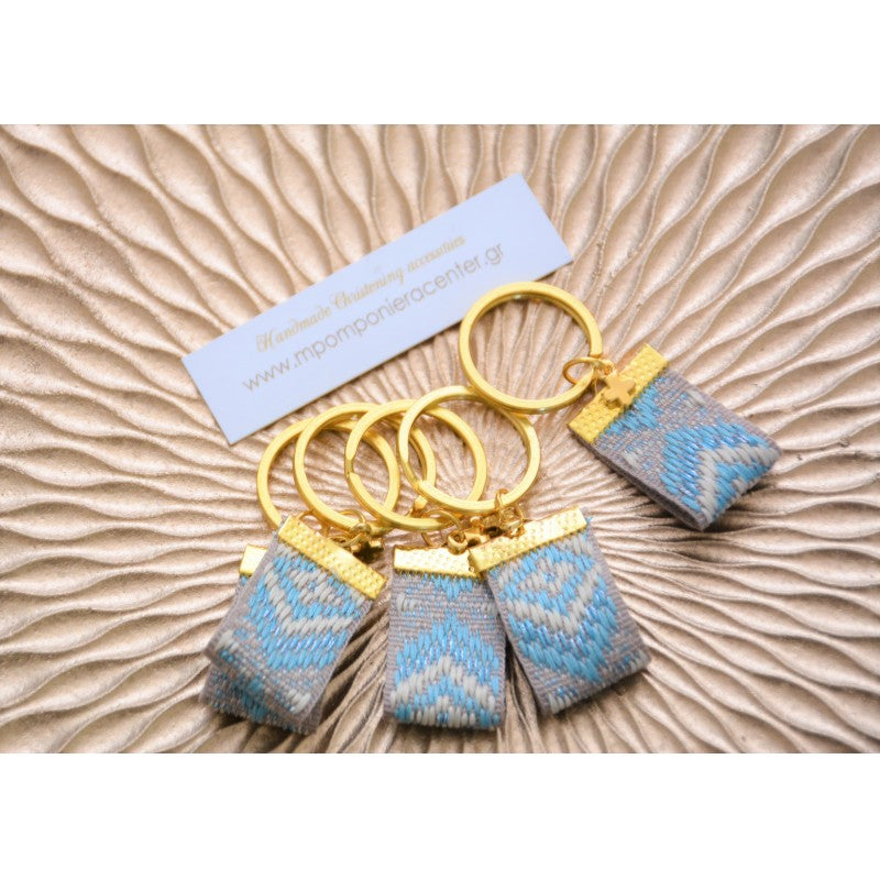 Μαρτυρικό μπρελόκ boho style με ιδιαίτερο μπεζ - σιέλ σχέδιο Vintage και σταυρό