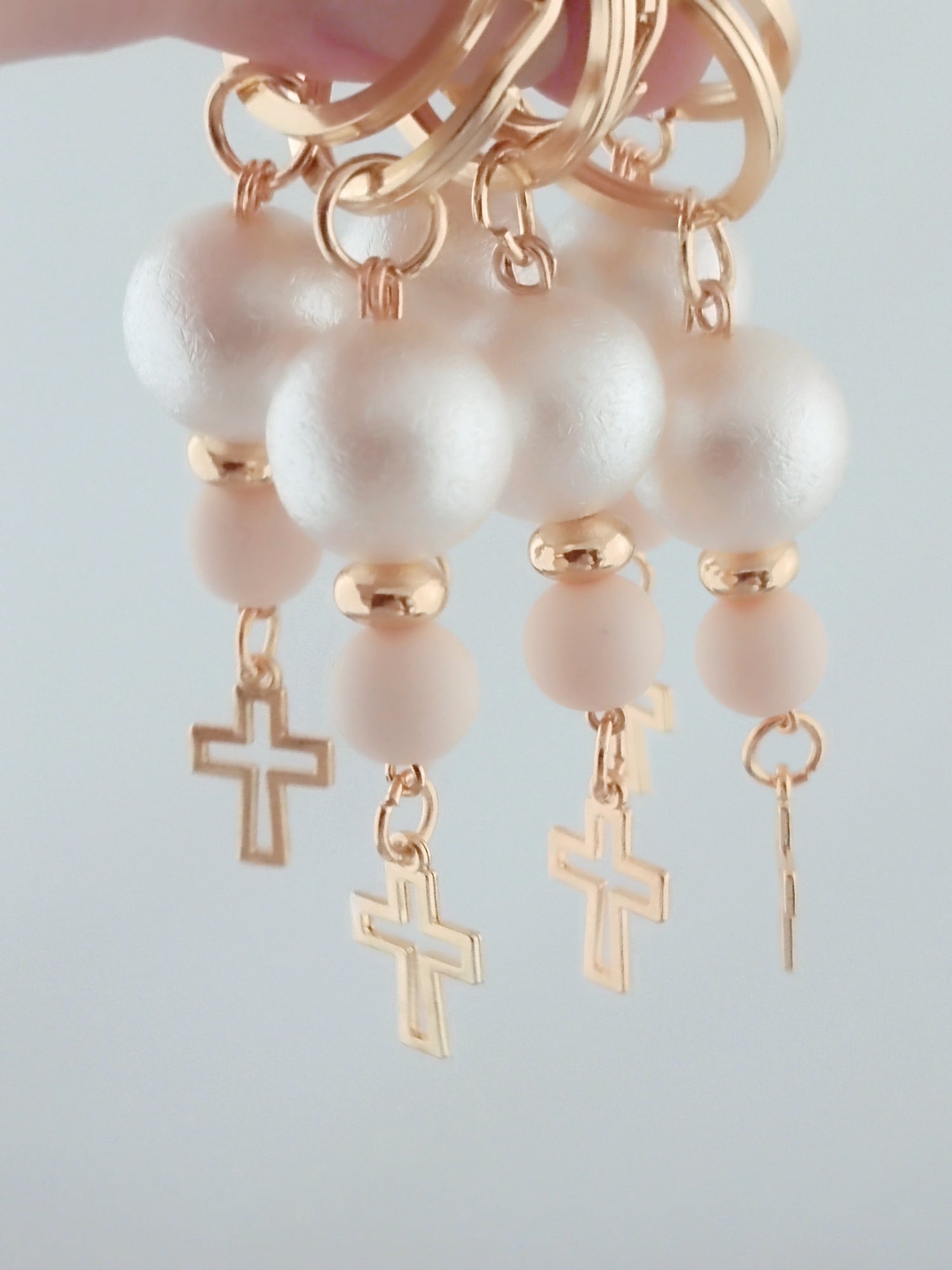 Μαρτυρικό μπρελόκ με ιδιαίτερες χάντρες περλέ και μπεζ - σταυρό χρυσό κρεμαστό
