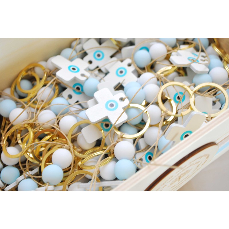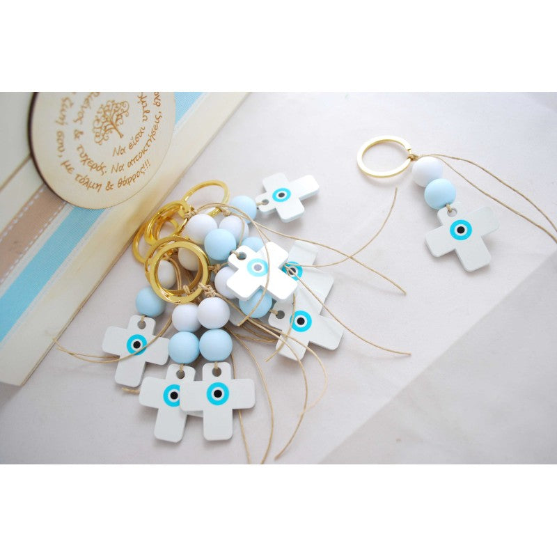 Μαρτυρικό μπρελόκ με ξύλινο ιδιαίτερο σταυρό με μάτι τυπωμένο εσωτερικά