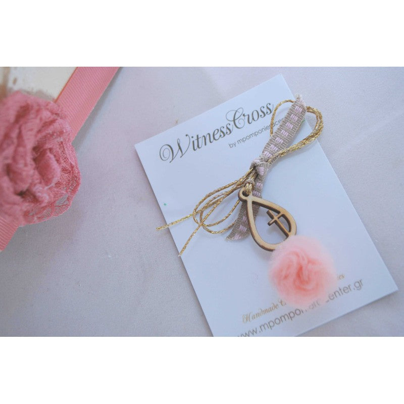 Μαρτυρικό για το μπέτι με ξύλινο σταυρό σε αποχρώσεις του ροζ - ρομαντικό ύφος