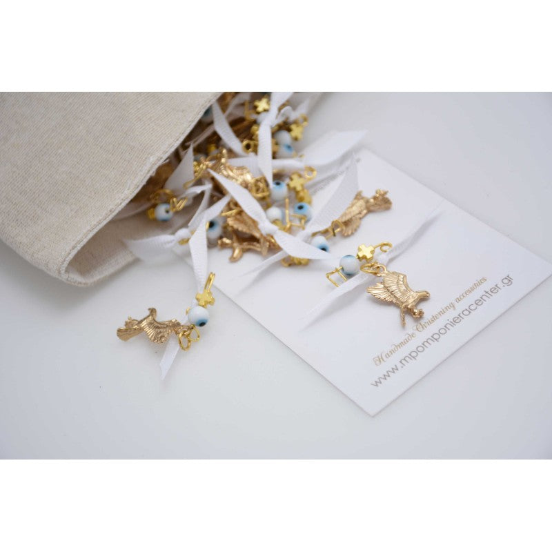 Μαρτυρικό καρφίτσα πέτου με αετό , ματάκι , και σταυρό μεταλλικό με λευκή κορδέλα και χρυσά στοιχεία