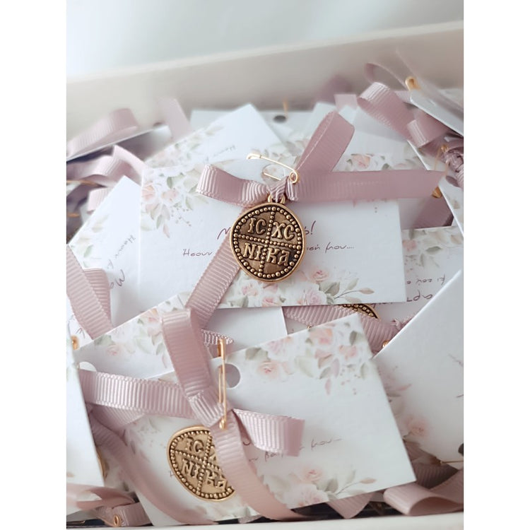 Μαρτυρικό κρεμαστό ΑγιοΚωνστάντινο χρυσό με κορδέλα και παραμανίτσα μικρή