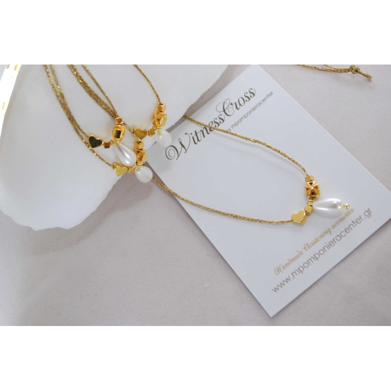 Μαρτυρικό κρεμαστό λαιμού με ιδιαίτερο σταυρό περαστό , κρεμαστή σταγονίτσα & καρδούλα περαστή