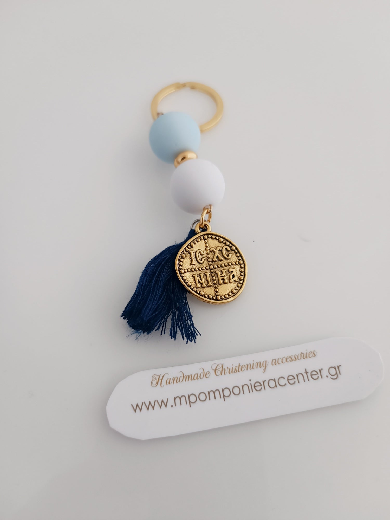 Μαρτυρικό μπρελόκ ΑγιοΚωνσταντινάτο σε σιέλ-λευκό και μπλέ σκούρα φούντα