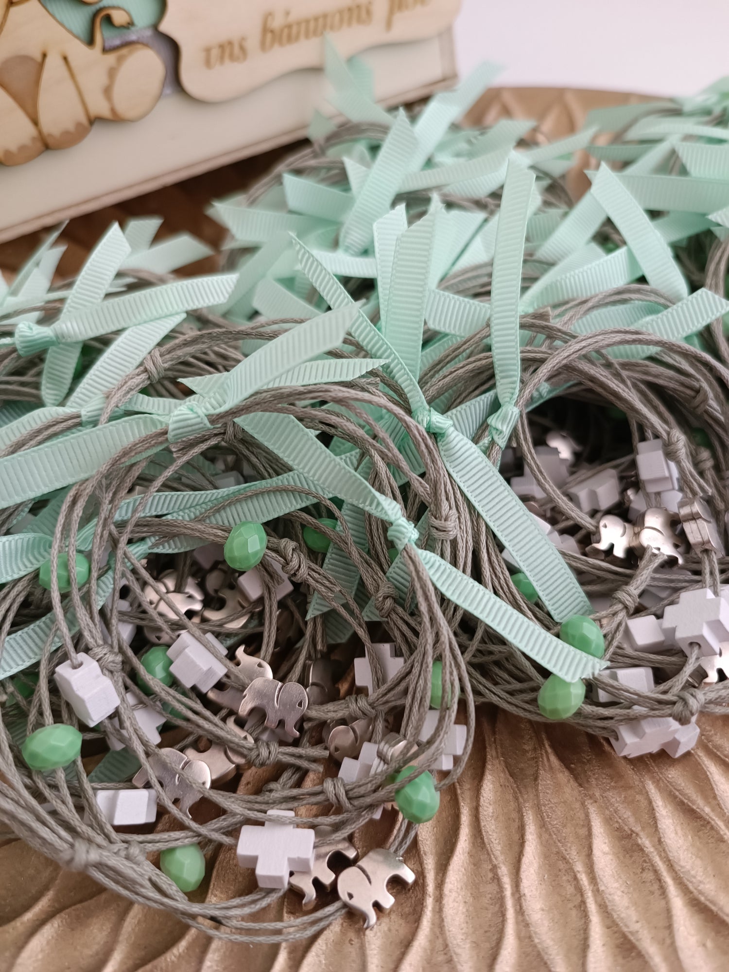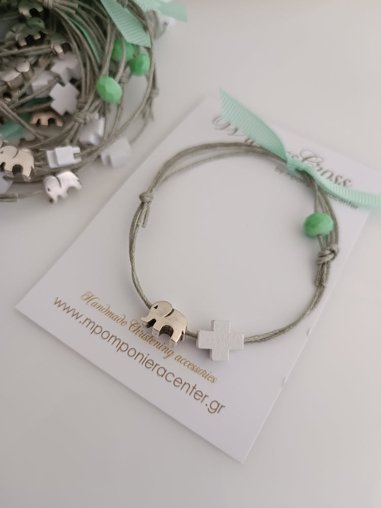Μαρτυρικό βραχιόλι με ελεφαντάκι σε γκρί - βεραμάν αποχρώσεις