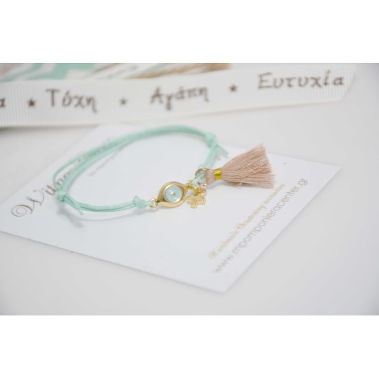 Μαρτυρικό βραχιόλι με ιδιαίτερο ματάκι και σταυρό στο πλάι με φουντίτσα