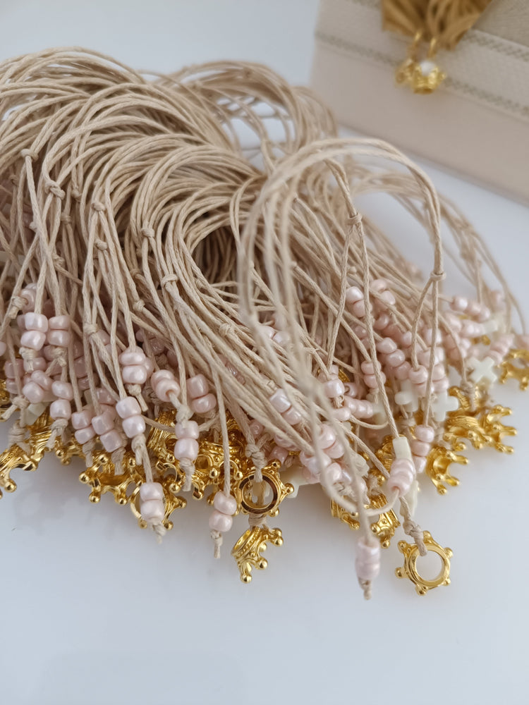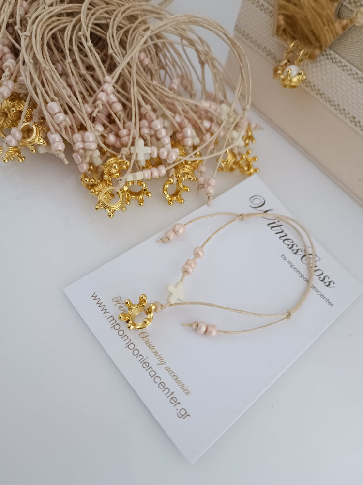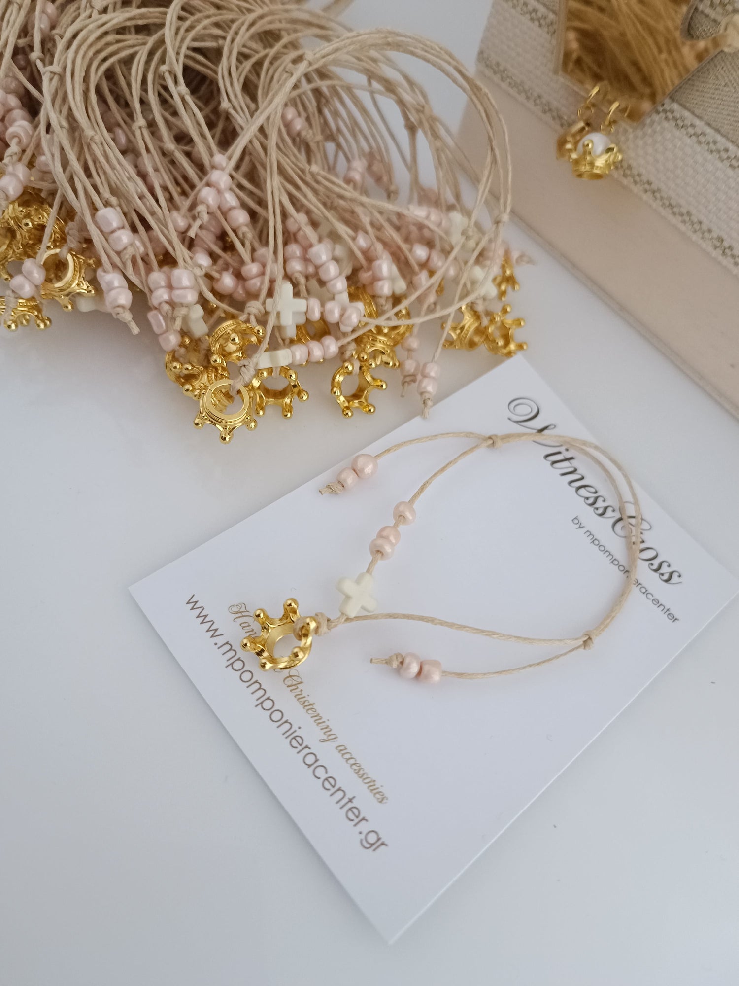 Μαρτυρικό βραχιόλι με κορώνα & ιδιαίτερο σταυρό με χάντρες σε αποχρώσεις σομών - εκρού - χρυσό